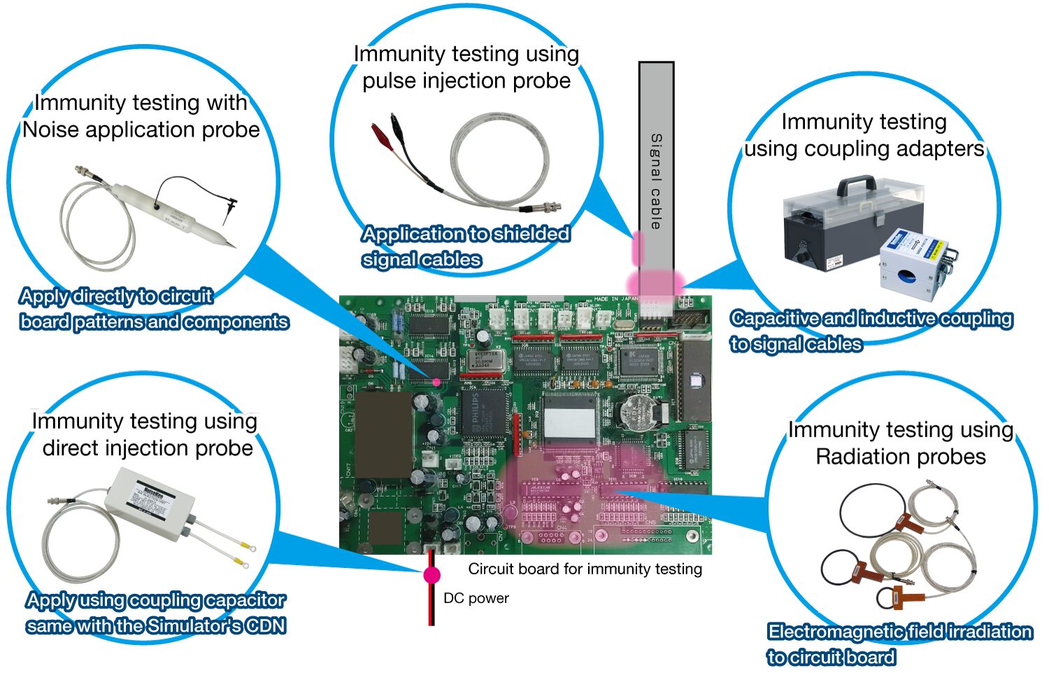 A probe for injecting noise directly into the pattern and parts of the printed circuit board.